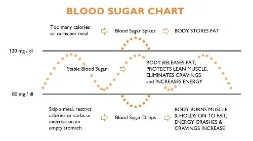 You see, the satiety hormone, leptin, tells our brain that it's time to stop eating and get active. But insulin blocks leptin from doing its job, thereby setting us up for insatiable hunger and overpowering cravings resulting in almost no way to stick to a healthy eating plan long term. However when we eat regular balanced meals and snacks that keep our blood sugar stable, our body releases fat, protects lean muscle, eliminates cravings, and increases energy. It's also important to note that when we skip a meal, or cut back too much on calories or carbs, our blood sugar drops causing our body to burn muscle, hold onto fat, our energy crashes and cravings increase.